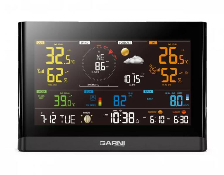 A GARNI 1025 Arcus meteorológiai Wi-Fi állomás beépített 7 az 1-ben érzékelővel van felszerelve, nagy pontosságú svájci SENSIRION érzékelőkkel, amelyek lehetővé teszik bizonyos mért mennyiségek kalibrálását. A főegység könnyen leolvasható, inverz színes VA kijelzővel rendelkezik, amely a mért mennyiségeket, az időjárás-előrejelzést, a dátumot, az időt és számos egyéb értéket mutat.