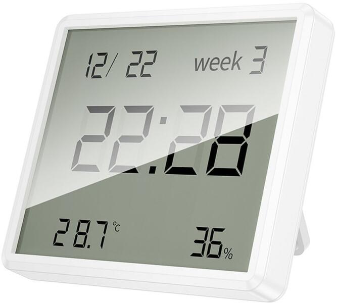 A HOCO HX41 egy multifunkcionális időjárás állomás óra, amely a hőmérséklet és a páratartalom mérését időkijelzéssel ötvözi. A könnyen leolvasható LCD kijelzőnek köszönhetően minden adat egyszerre jelenik meg, és 15 másodpercenként frissül. Praktikus eszköz a beltéri körülmények monitorozására. , , , A HOCO HX41 időjárásállomás tartós ABS műanyagból készült , ami hosszú élettartamot biztosít. Kis mérete és súlya könnyűvé és kompakttá teszi a készüléket, így kényelmesen elhelyezhető az asztalon, polcon vagy más helyen otthonában. , , A készüléket egy 200 mAh-s CR2032 elem táplálja, amely hosszú üzemidőt biztosít gyakori elemcsere nélkül. A hőmérséklet, a páratartalom és az idő egyidejű kijelzése egyetlen LCD képernyőn megkönnyíti a helyiség paramétereinek egy pillantással történő ellenőrzését. , , Specifikáció:, Anyag: ABS, Méretek: 776812 mm, Tömeg: 70 g, Kijelző: LCD, Elem: CR2032 (200 mAh), Funkciók: hőmérséklet, páratartalom és idő kijelzése, adatok frissítése 15 másodpercenkéntGyártó: Hoco
