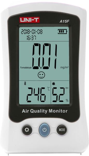 Uni-T A15F Levegőminőség Mérő: Tartsa kézben a levegő minőségét! ?️ Az Uni-T A15F egy kompakt és könnyen használható eszköz, amely segít a formaldehid szintjének, a hőmérsékletnek és a páratartalomnak a monitorozásában. Ideális választás otthoni, irodai vagy akár iskolai használatra, hogy biztosítsa a tiszta és egészséges levegőt maga körül. Főbb jellemzők:Pontos mérések: Formaldehid: 0 - 2 mg/m³ tartományban, ±0,06 mg/m³ pontossággal Hőmérséklet: -10 - 50°C tartományban Páratartalom: 0 - 99% relatív páratartalom tartománybanKényelmi funkciók: Automatikus kikapcsolás az energiatakarékosság érdekében Alacsony akkumulátortöltöttség jelző, hogy mindig időben feltölthesse Háttérvilágítású LCD kijelző a könnyű olvashatóságért, még gyenge fényviszonyok között is Riasztás a formaldehid koncentrációhatár túllépése esetén Maximális és minimális értékek rögzítése a levegőminőség változásainak nyomon követéséhezKompakt és hordozható: Mindössze 230 g súlyú, így bárhová magával viheti. Hosszú üzemidő: Az 1300 mAh-s akkumulátor egyetlen töltéssel hosszú üzemidőt biztosít. USB töltés: A mellékelt USB kábellel könnyedén feltöltheti a készüléket. Műszaki adatok:Paraméter Tartomány Pontosság FelbontásFormaldehid (HCHO) 0 - 2 mg/m³ ±0,06 mg/m³ 0,01 mg/m³Hőmérséklet -10 - 50°C Pontos mérés MegfelelőPáratartalom 0 - 99% RH Pontos mérés MegfelelőAz Uni-T A15F levegőminőség mérővel nyugodt lehet, hogy otthona vagy munkahelye levegője tiszta és biztonságos. ?